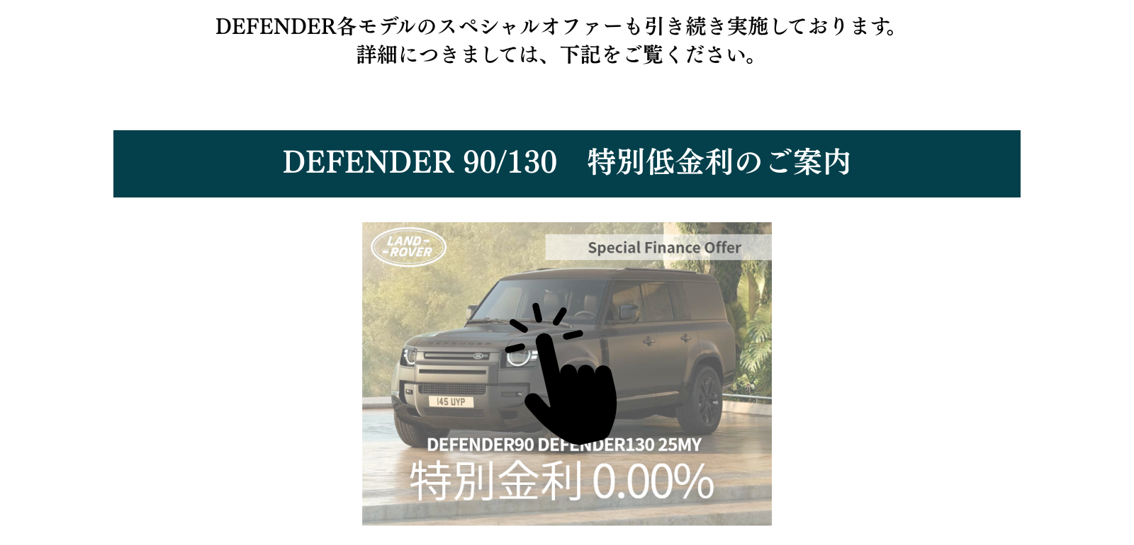 【DEFENDER90 DEFENDER130特別金利のご案内】