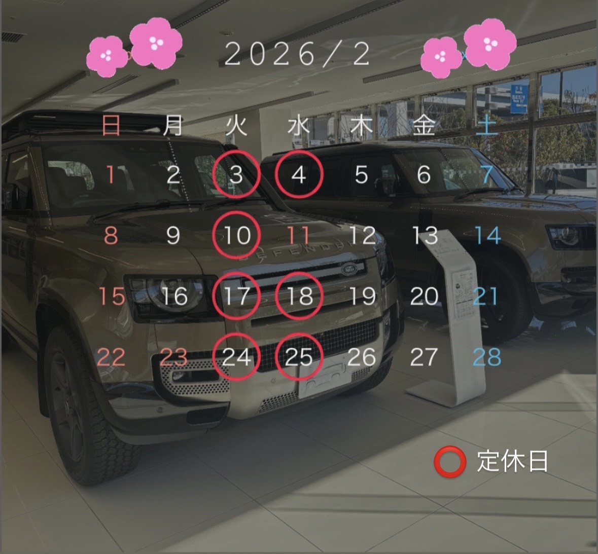 2月の営業カレンダー
